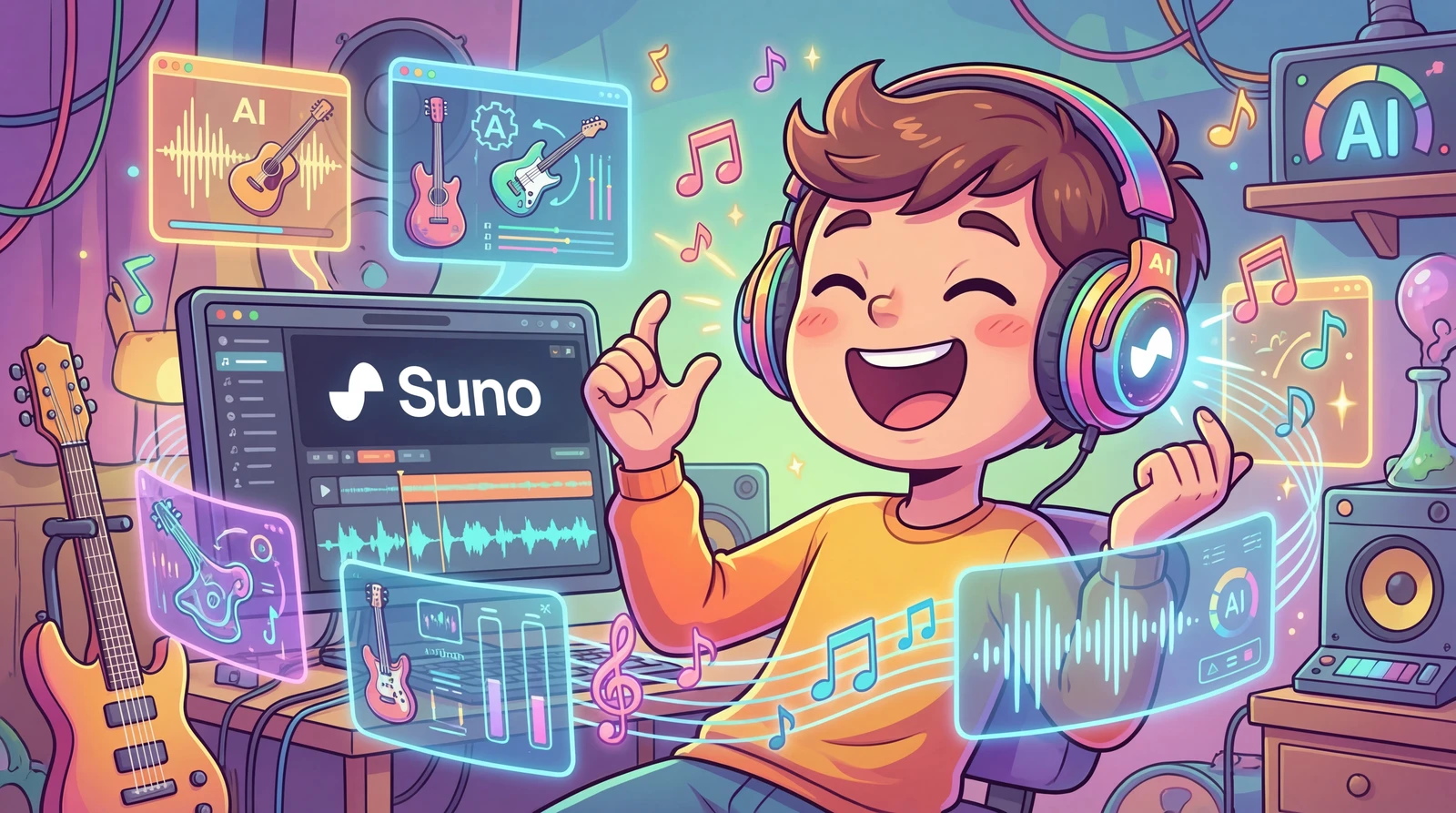 | Premier | $30 ($24) | 10,000 크레딧/월 (~2,000곡), Suno Studio, 8분 오디오 업로드, 우선 생성 | 🔗 공식 가격 페이지 Suno 무료 플랜으로 수익 창출은 불가