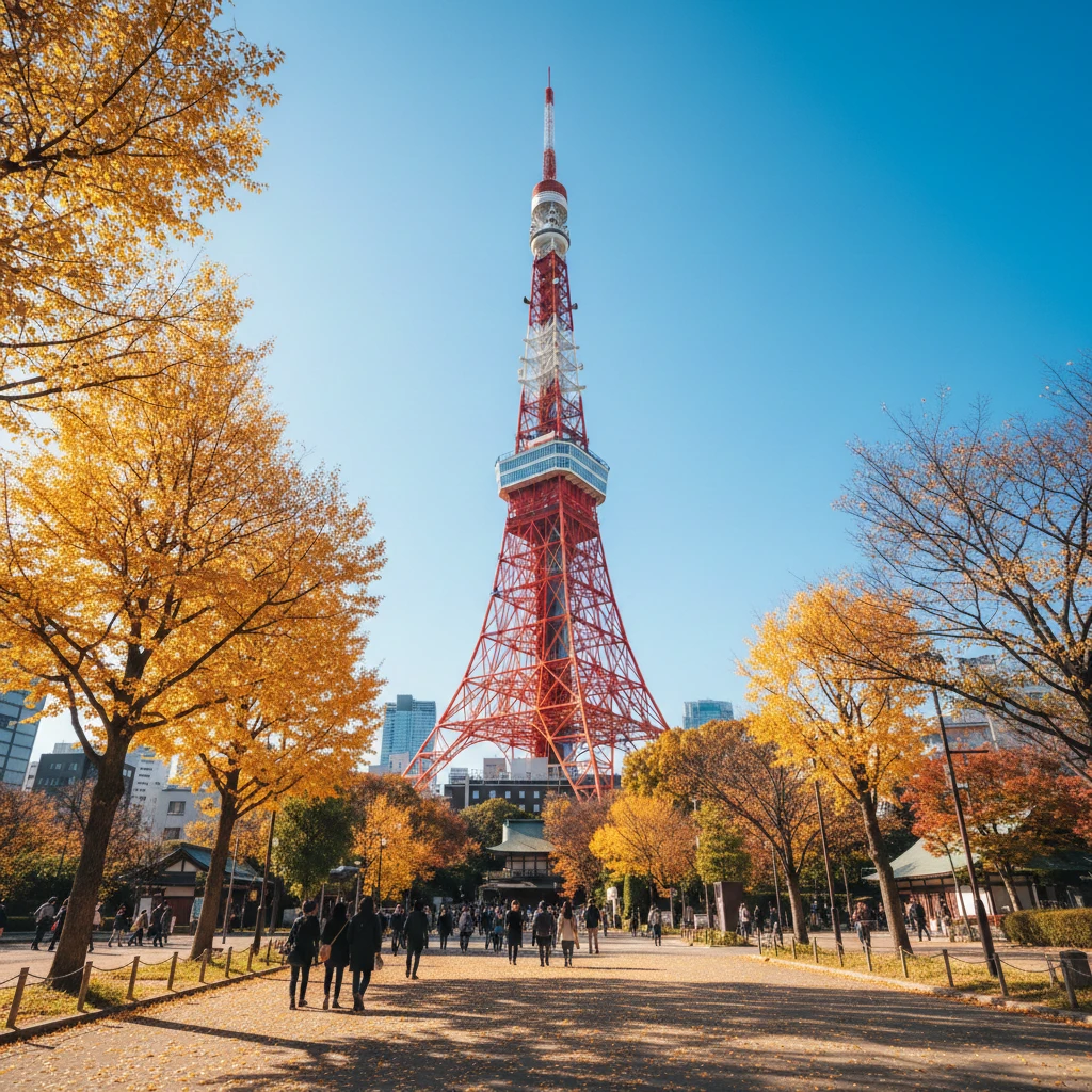 [INSTRUCTION] Create a photorealistic National Geographic-quality landscape photograph with natural color grading, sharp focus throughout, and balanced exposure. [SUBJECT] Tokyo Tower in Minato City, Japan Coordinates: 35.6586°N, 139.7454°E [COMPOSITION] Camera positioned at ground level, facing North, medium distance, using 24mm wide-angle lens. [ENVIRONMENT] Weather: crystal clear sky, high visibility, vivid colors Season: golden and red foliage, warm earth tones Time: bright overhead sun, short shadows, high contrast Atmosphere: transparent air, no atmospheric effects, maximum detail [CAMERA] Body: Nikon D850 Lens: AF-S NIKKOR 24mm Aperture: f/5.6 ISO: ISO 200